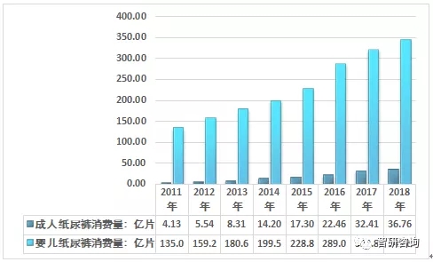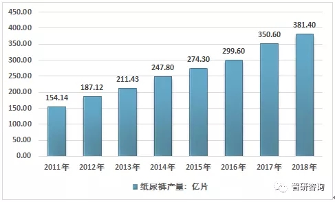 2011-2018年我國紙尿褲產(chǎn)量統計圖