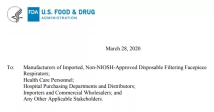 3月28日,在美國FDA新出臺的一次性呼吸器緊急使用授權(EUA)清單中,把中國KN95防護產(chǎn)品和GB2626-2006標準的產(chǎn)品都取消掉了。