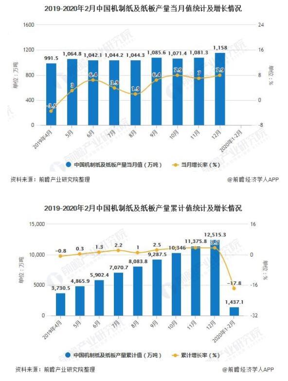 2020年1-2月中國機制紙及紙板產(chǎn)量超1400萬(wàn)噸