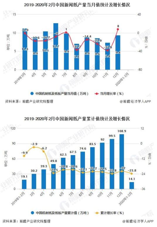 2020年1-2月中國新聞紙產(chǎn)量超14萬(wàn)噸
