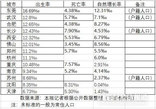 新一線(xiàn)城市2019年人口出生率、死亡率、自然增長(cháng)率一覽