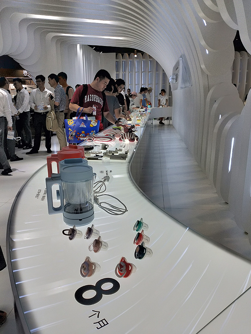 還有展商從宇宙飛船元素找到靈感,結合到奶瓶產(chǎn)品陳列布景當中,令人印象深刻。